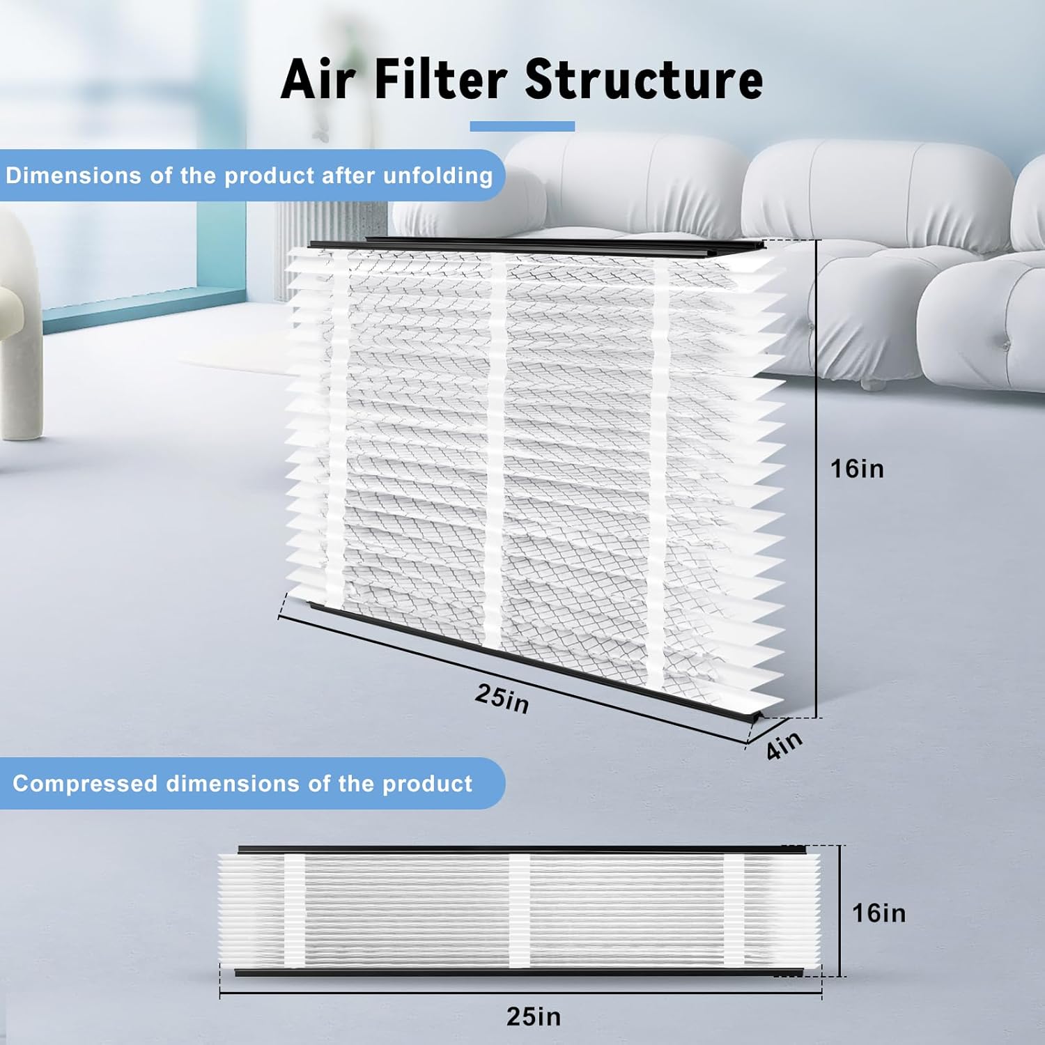 [Product Size]: Upgraded 416 furnace air filter size of 16in x 25in x4 inch, This size is to help you easily identify the correct replacement filter and is not an actual size.