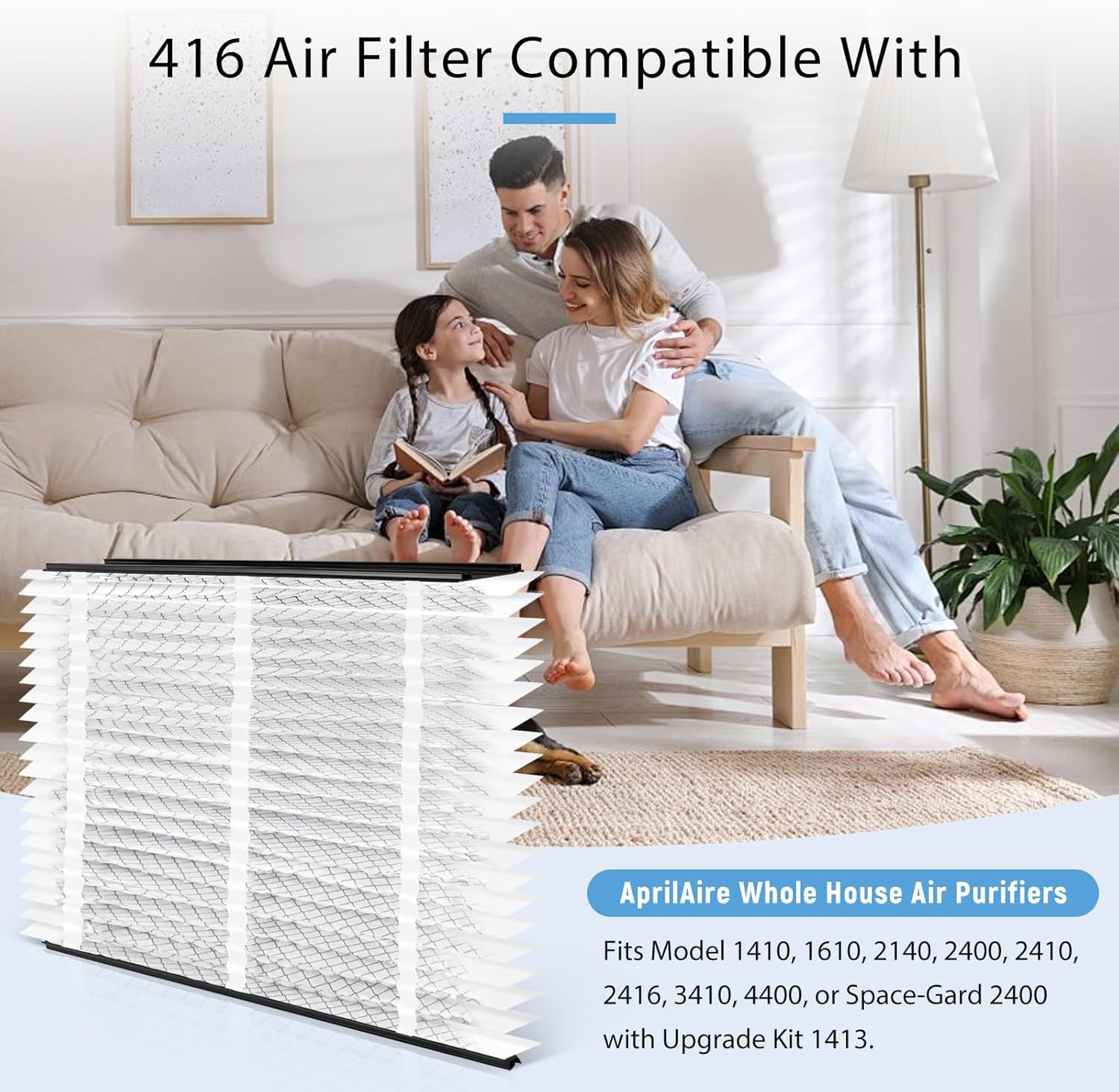 [Compatibility]: 416 furnace replacement filter is compatible with Aprilaire 410 whole house furnace models 1410/1610/2140/2410/2416/3410/4400/Space-Gard 2400 with Upgrade Kit 1413.