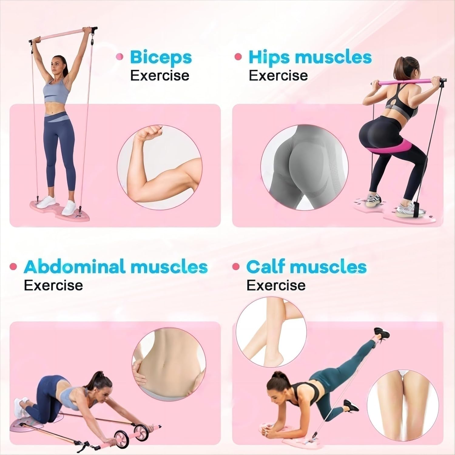 【All In One Home Gym System】:In addition to the push-up board, this all-in-one portable workout equipment system includes a Pilates bar and 20 fitness accessories. These fitness accessories, such as resistance bands and an ab roller wheel, provide a wide range of exercises to target various muscle groups for a complete full body workout.