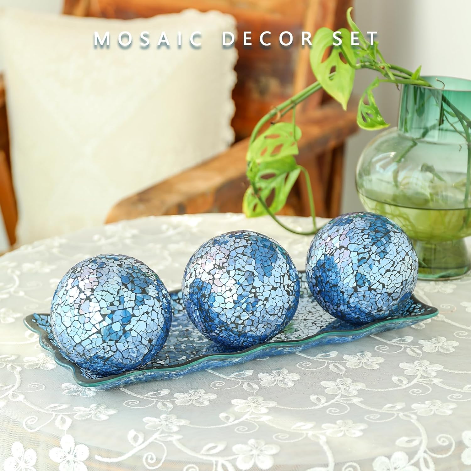 Friendly Customer Service: This package includes 3 mosaic glass orbs and 1 decorative bowl, each measuring 4 inches in diameter. Please confirm the product size before purchase and feel free to contact us via email for any inquiries.