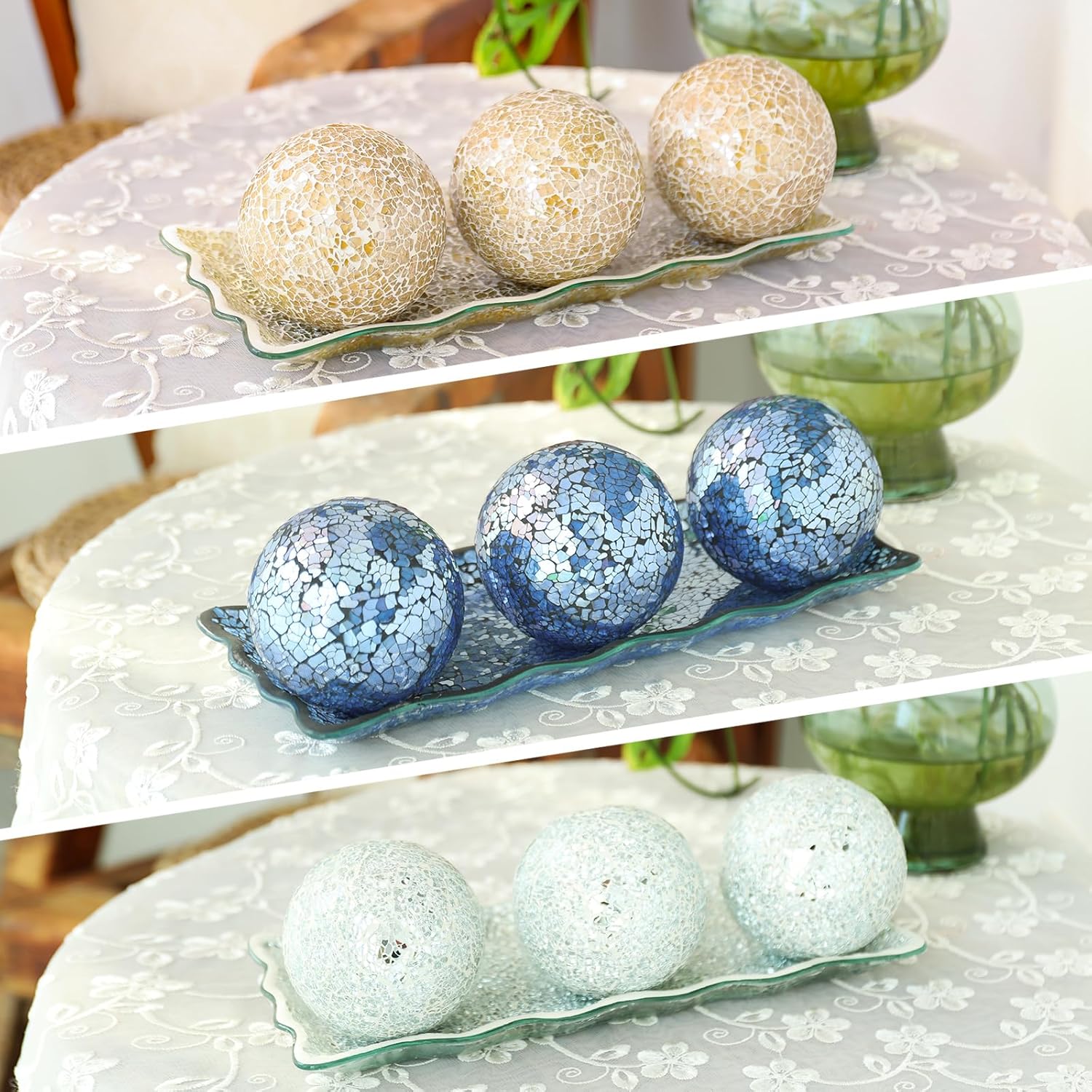 Friendly Customer Service: This package includes 3 mosaic glass orbs and 1 decorative bowl, each measuring 4 inches in diameter. Please confirm the product size before purchase and feel free to contact us via email for any inquiries.