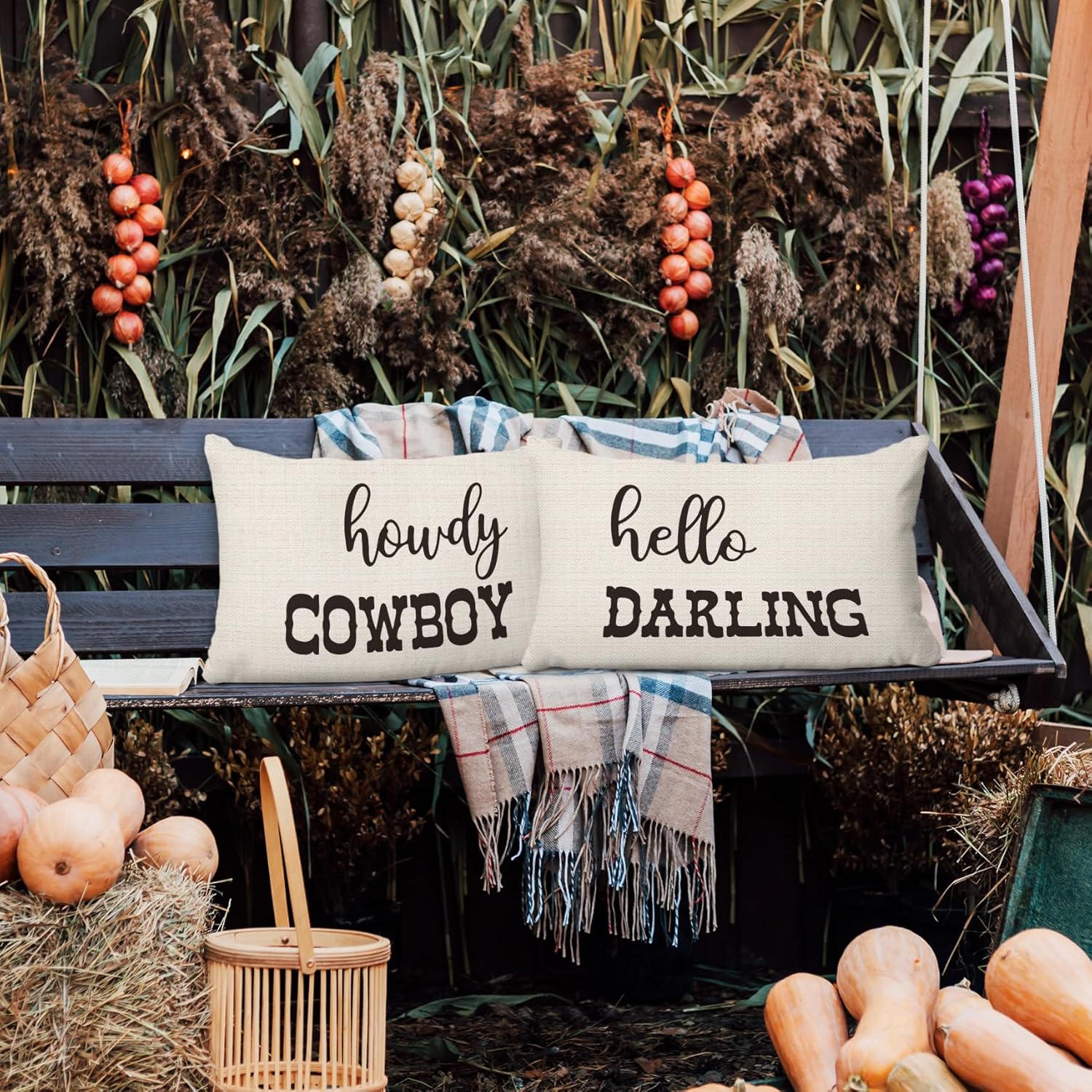 Western Throw Pillows – Western Bedroom Decor Throw Pillow Cover, Western Pillow Covers, Western Home Decor, Couple Pillow Case 12 x 20 Inch Sofa Bed Set of 2, Western Couples Gifts (Off-White)