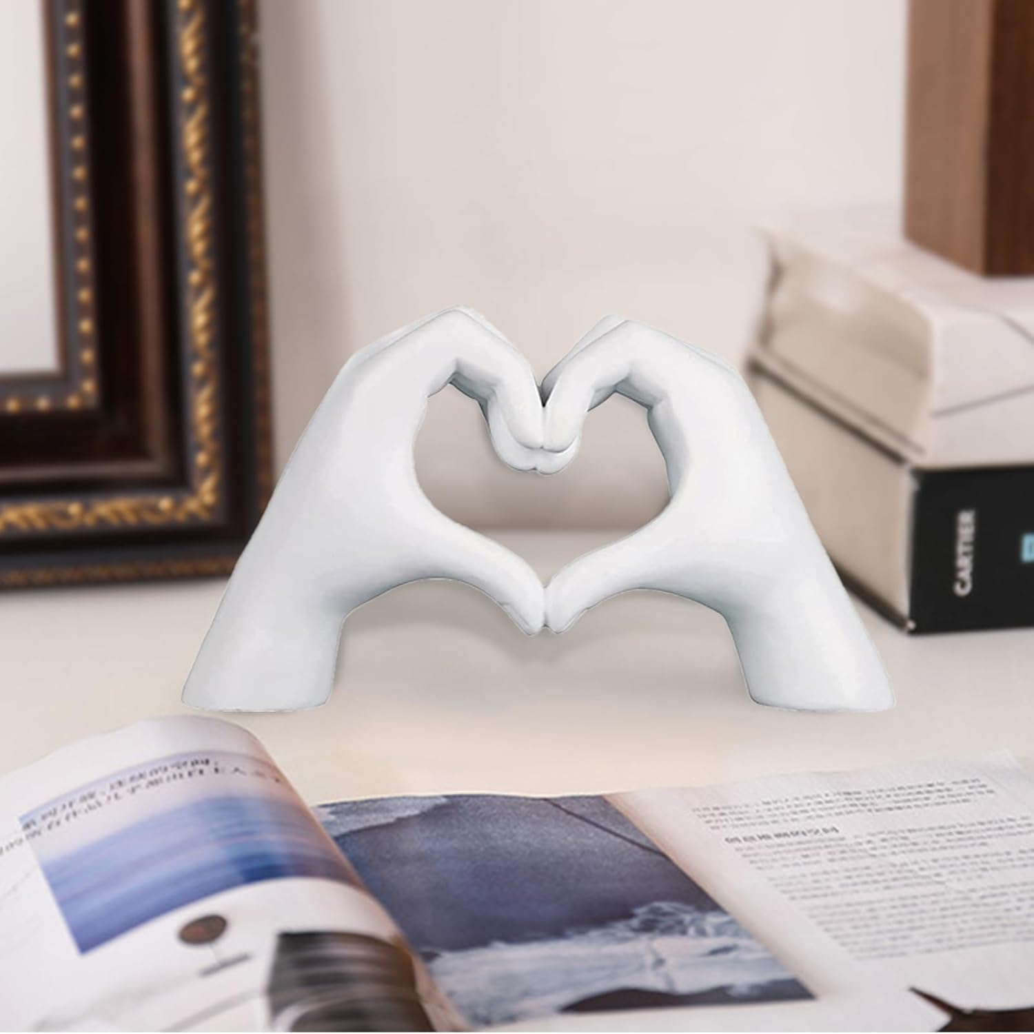 White Decor,Heart Hands Sculpture for Living Room Decor,Love Finger Modern Statue for Boho Wedding Decorations,Sculptures Home Decor for Shelves