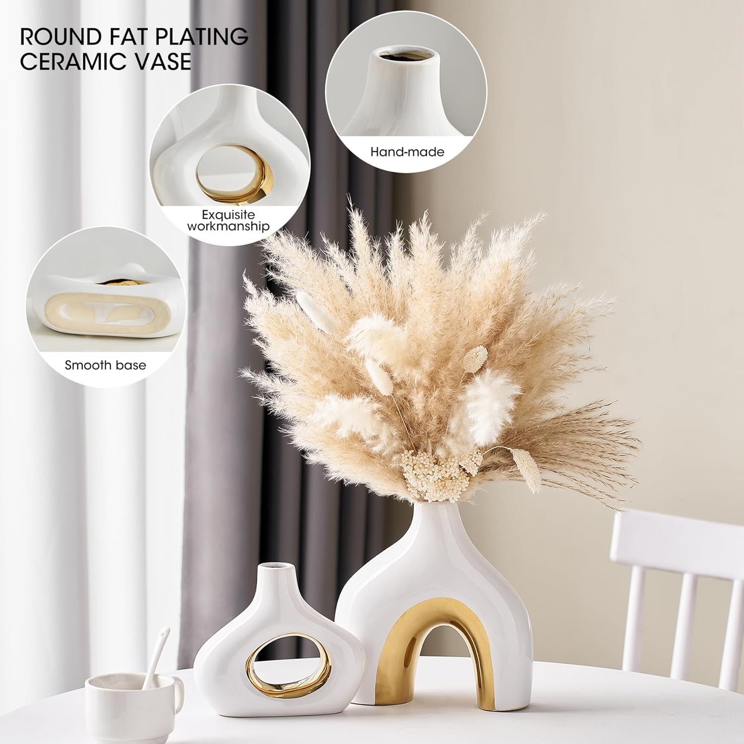 This minimalist ceramic vase set has an elegant and simple design, decorate your home with this unique vase set and add a stylish touch to golden home decor!