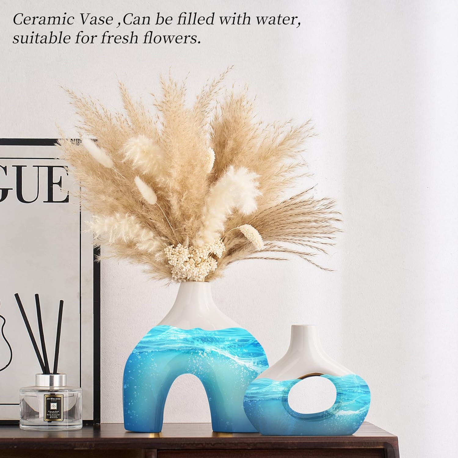 Modern Vase: The stylish vase is not only suitable for holding dried flowers, reeds, eucalyptus, pampas grass, red berries, and other decorative items, but it can also hold flowers in water without worrying about leaks.