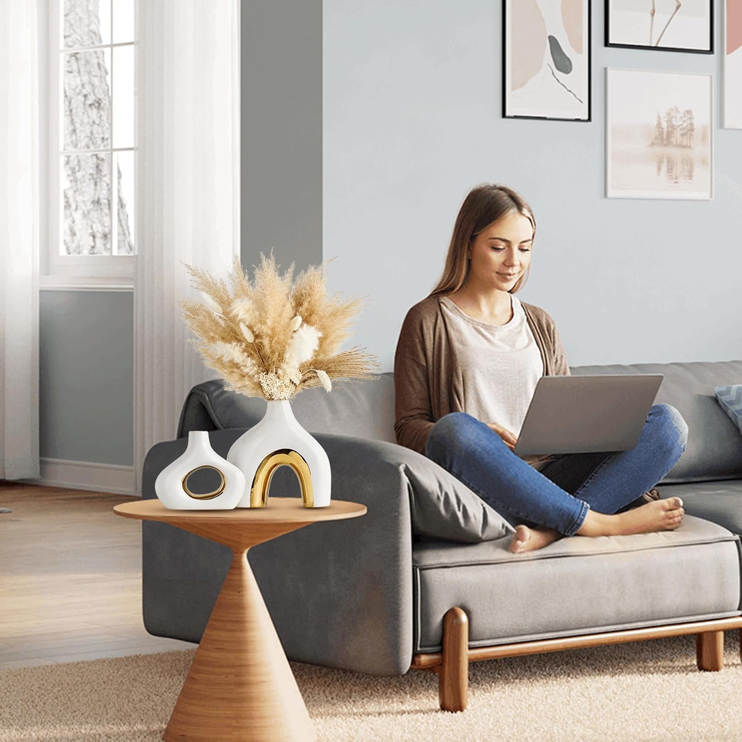Modern Vase: The stylish vase is not only suitable for holding dried flowers, reeds, eucalyptus, pampas grass, red berries, and other decorative items, but it can also hold flowers in water without worrying about leaks.