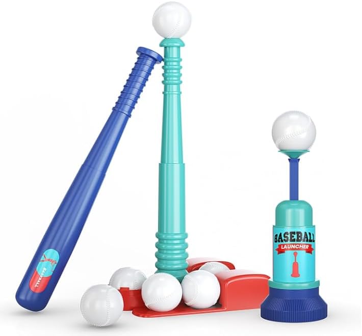 T Ball Sets for Kids 3-5 5-8, Kids Baseball Tee with 6 Balls/Adjustable Batting Tee/Automatic Pitching Machine, Outdoor Sport Toys for Toddlers Boys and Girls